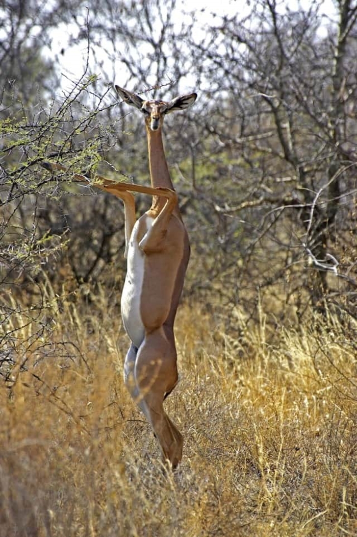 기린처럼 긴 목, 작은 얼굴에 큰 귀. 마치 판타지 세계에 나오는 성수 같은 아름다움을 뽐내는 것은, 아프리카에 사는 제레누크다.