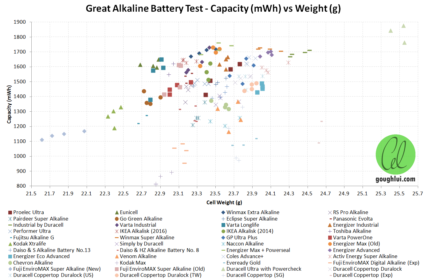 오스트레일리나 웨스턴 시드니 대학에서 엔지니어링을 연구하고 있는 Gough Lui 씨에 의하면, 한마디로 전지라고 해도 그 성능은 천차만별이라고 한다. 예를 들면, 용량의 경우, "용량이 1000mAh이고 전압이 1.5V의 전지와 500mAh이고 3V에서는 같은 에너지를 가지고 있다"는 것으로 되기 때문에, 일률적으로 용량의 값이 크면 고성능이라고 하는 것은 아니다. 전류와 전압을 곱해 "밀리와트시(mWh)"를 계산하면, 전지의 전력량을 파악할 수 있지만, 공칭전압은 온도를 비롯한 컨디션에 따라 크게 변동하기 때문에 제조사의 정보나 간단한 측정만으로는 전지의 실력을 알 수 없다고 한다.