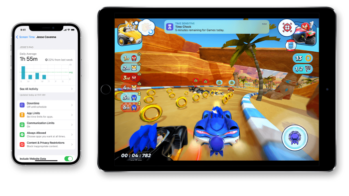 티폴트로에서는, "스크린 타임"은 모든 설정과 제한을, 모든 Apple 디바이스간에 동기한다. 이론적으로는, 이것은 편리하다. 아이폰 트위터 앱에 30분 제한을 설정하면, Mac에서 트위터 웹사이트를 사용해도 해당 제한을 피할 수 없다.