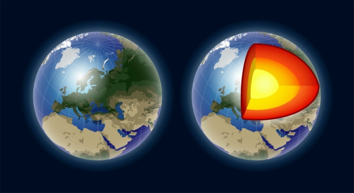 지구는 상부 지각이나 맨틀 아래 직경 약 7000km의 핵을 가지고 있으며, 액체 외핵이 지하 2900km~5100km, 고체 내핵이 지하 5100km~6400km에 위치하고 있는 것으로 생각되어지고, 이 내핵은 "지구의 다른 부분보다 빠른 속도로 독자적으로 회전하고 있다"고 생각되지만, 새로 발표된 논문에서는, 지난 10년간 내핵의 기묘한 회전이 정지된 것으로 보고되었다.