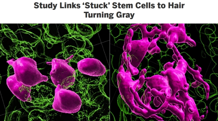 머리카락이 하얗게 되어 버리는 것은, 흰머리 카락이 나는 사람들에게는 골칫거리. 쥐의 털을 반복적으로 뽑아 모낭을 강제로 노화시켜 버리는 실험에 의해, 색소를 만드는 세포가 모낭 속을 이동하면서 성숙과 회춘을 반복하는 독특한 능력을 가지고 있는 것이나, 그것이 상실됨으로써 흰머리가 되어 버리는 메커니즘이 판명되었다.
