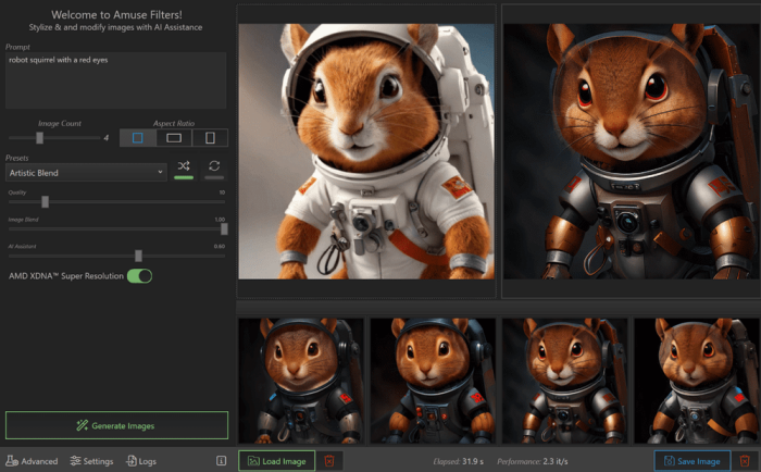 AMD의 Ryzen AI 300 시리즈와 Radeon RX 7000 시리즈, Ryzen 8040 시리즈를 지원하는 이미지 생성 AI 'Amuse 2.0 Beta'가 등장.