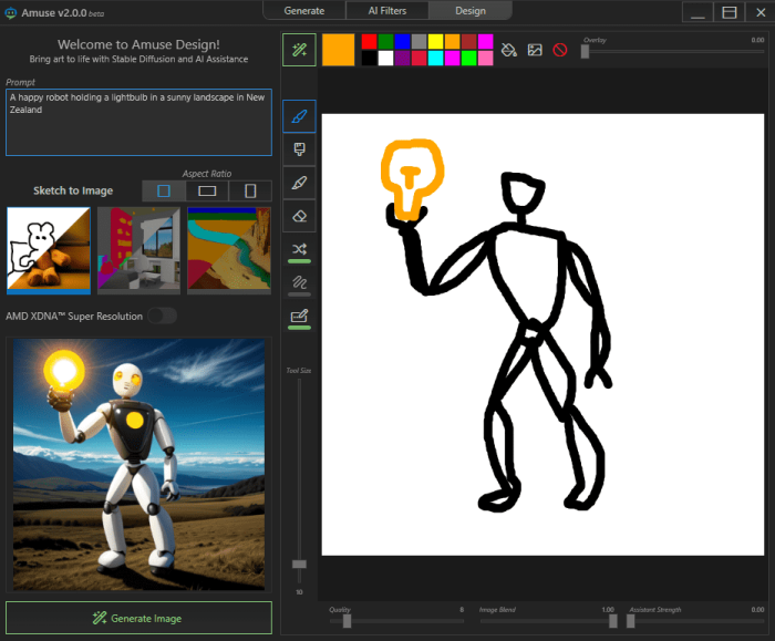 Amuse 2.0 Beta는 뉴질랜드에 본사를 둔 AI 기술 기업 'TensorStack'과 AMD가 제휴해 개발한 이미지 생성 AI로, 대상의 프로세서에 최적화돼 있으며, AMD는 "설치가 쉽고, 손이 덜 가고, 사용하기 쉽다"고 소개하고 있다.