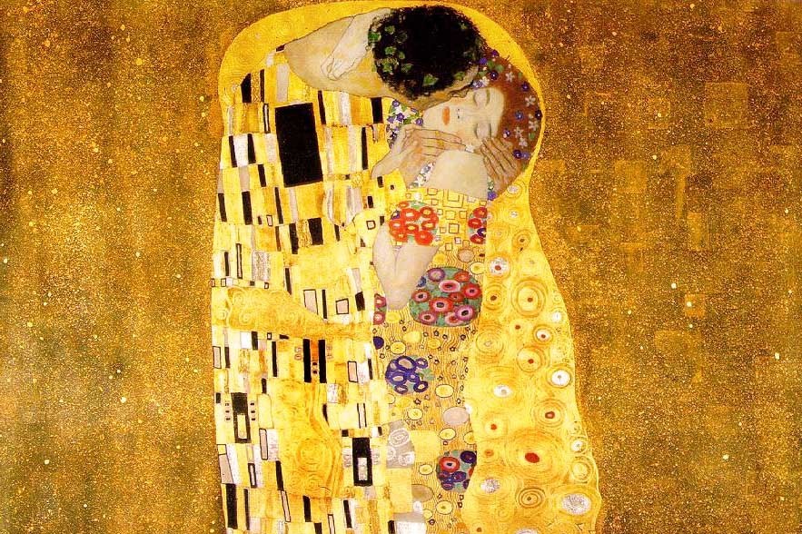 쿤스트라 하우스와의 갈등과, 관능적인 주제 외에 클림트가 집착했던 것이 '금(gold)'이었고, 클림트의 대표작인 '키스(입맞춤)'는 언뜻 보면 화려하고 아름답지만, 자세히 보면 남자의 목이 흉측하게 뒤틀려 있어 '남자는 성욕을 의인화한 것'으로 해석되는 '더러운 현실'을 그린 것으로 알려져 있다. 이 키스에서는 전면에 걸쳐 금박이 다량으로 사용되고 있다는 것.